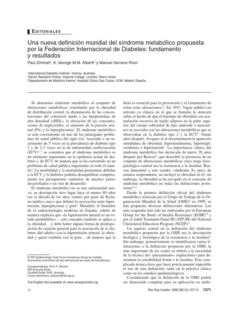 Zimmet P, et al. Nueva definición del síndrome metabólico de la Federación Internacional de Diabetes