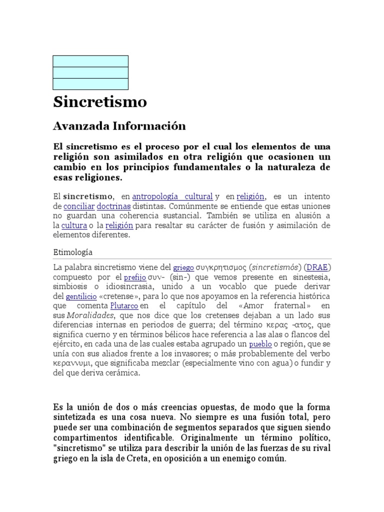 tercero. El problema del sincretismo se encontrarán con cada nueva