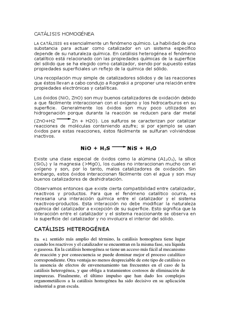 LA CATÁLISIS es esencialmente un fenómeno químico. La habilidad de una
