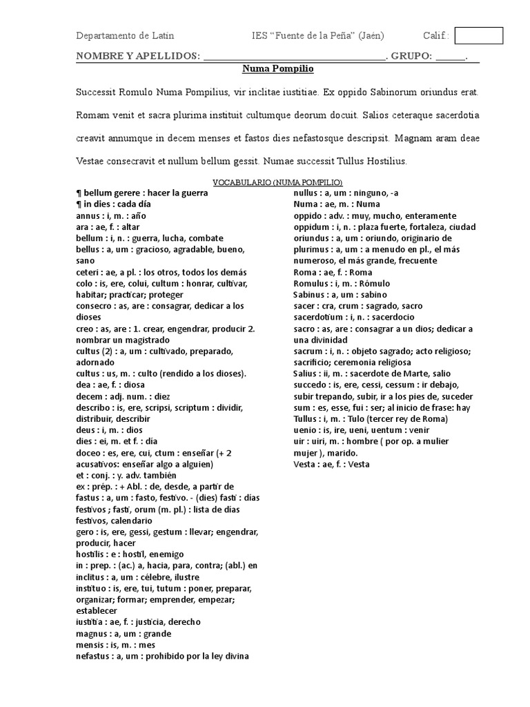VOCABULARIO (NUMA POMPILIO)