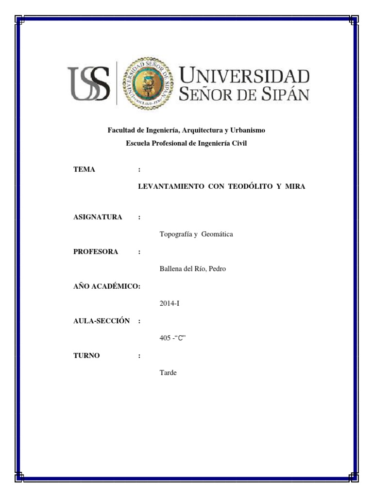 LEVANTAMIENTO CON TEODÓLITO Y MIRA