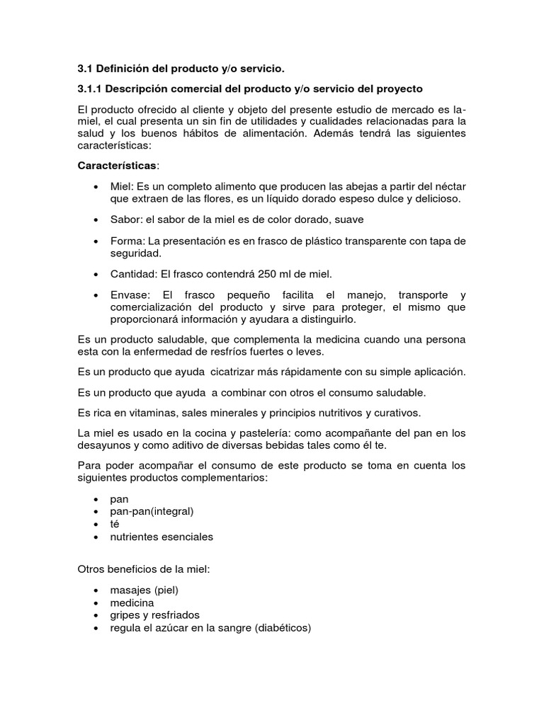 3.1 Definición del producto y/o servicio.