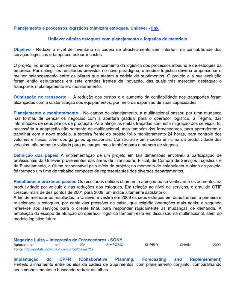 Objetivo - Reduzir o nível de inventário na cadeia de abastecimento sem interferir na confiabilidade dos