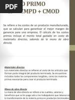 Costo Primo: Es la suma de materia prima directa y mano de obra directa.