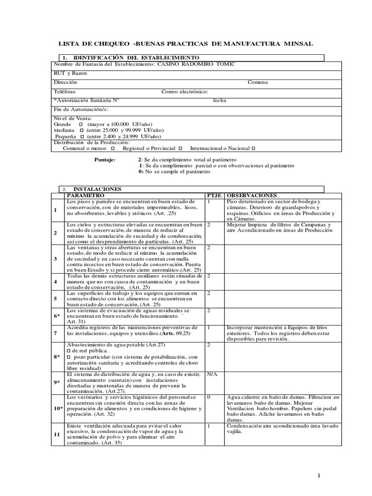 Check List MINSAL RT