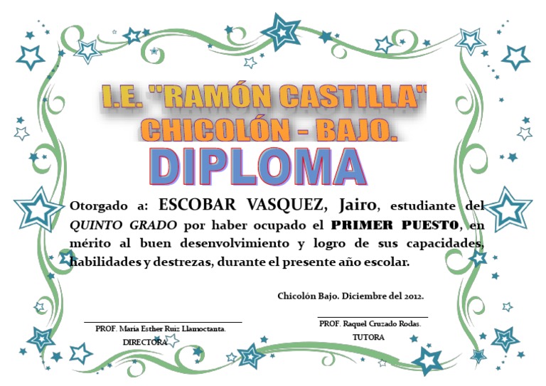 QUINTO GRADO por haber ocupado el PRIMER PUESTO, en