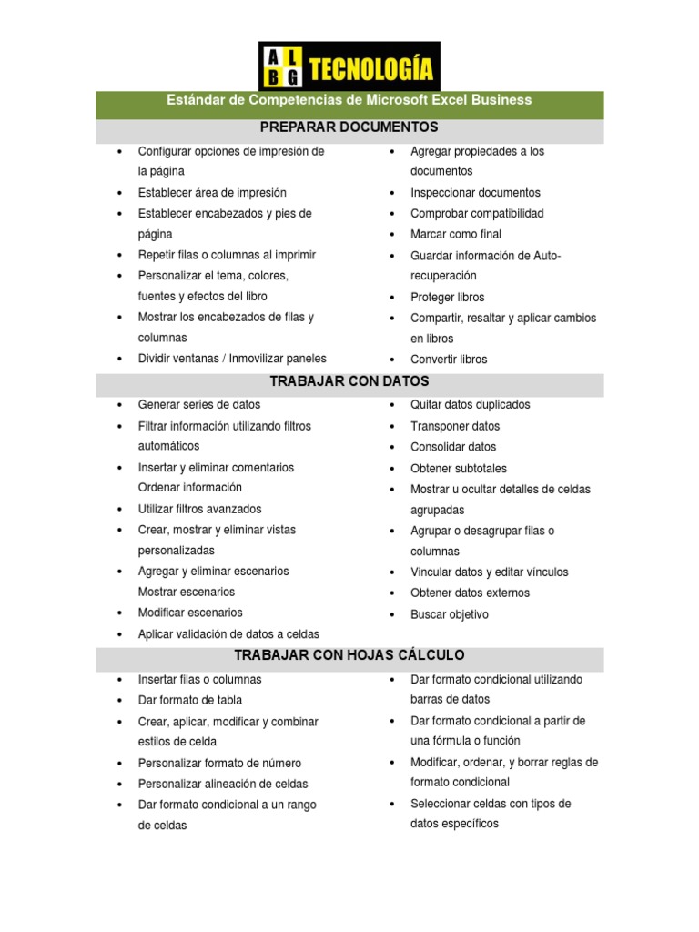 Estándar de Competencias de Microsoft Excel Business
