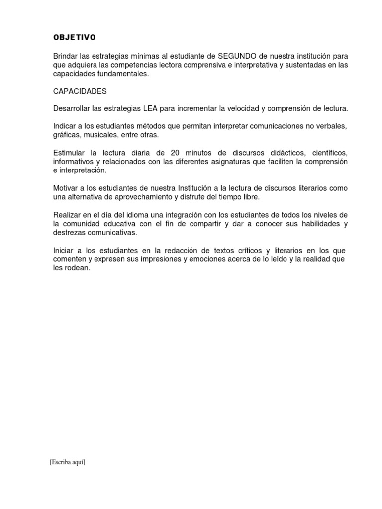 Brindar las estrategias mínimas al estudiante de SEGUNDO de nuestra institución para
