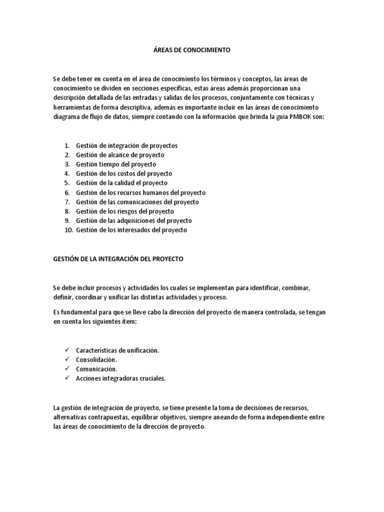 las áreas de conocimiento de la dirección de proyecto.