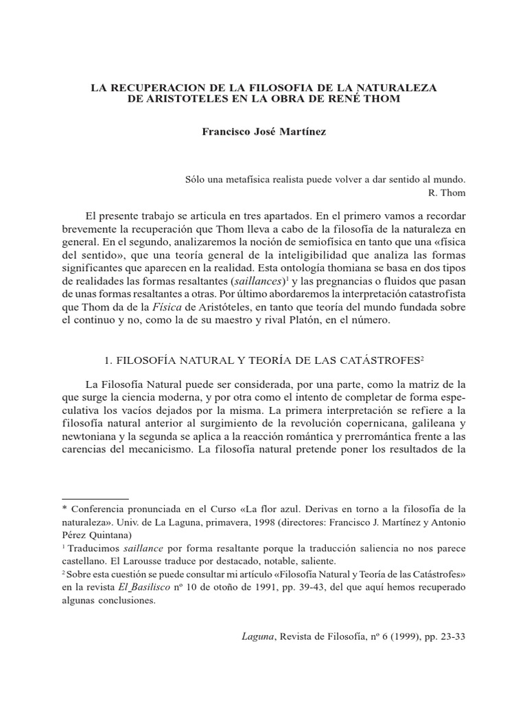 brevemente la recuperación que Thom lleva a cabo de la filosofía de la naturaleza en
