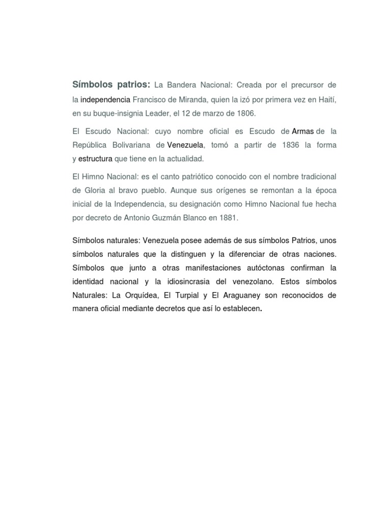 Símbolos naturales: Venezuela posee además de sus símbolos Patrios, unos