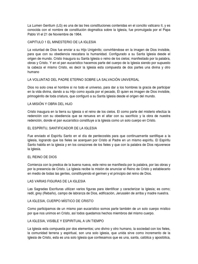 La Lumen Gentium (LG) es una de las tres constituciones contenidas en el concilio vaticano II, y es