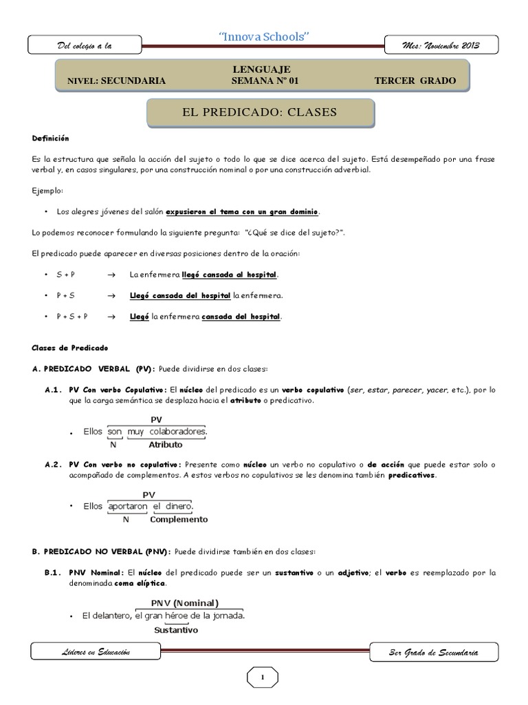 B. PREDICADO NO VERBAL (PNV): Puede dividirse también en dos clases: