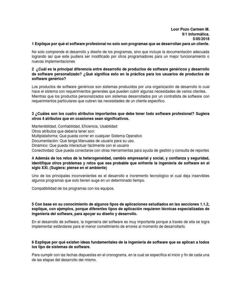 1 Explique por qué el software profesional no solo son programas que se desarrollan para un cliente.