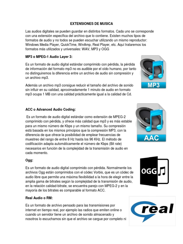 formatos de audio y no todos se pueden escuchar utilizando un mismo reproductor: