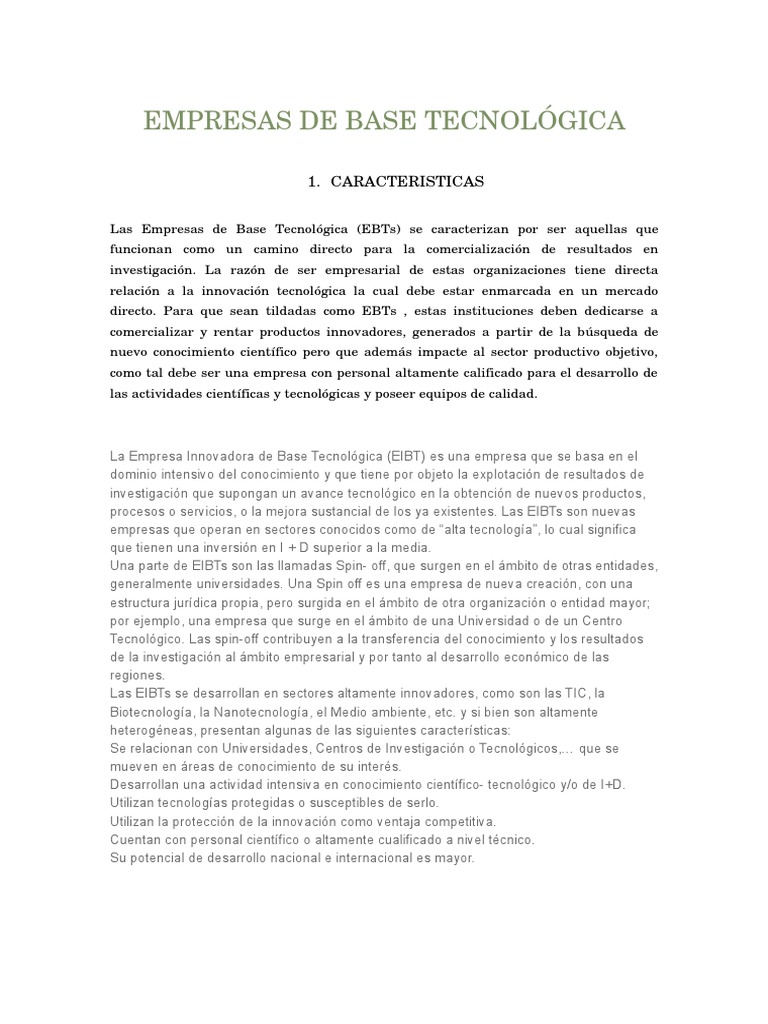 Las Empresas de Base Tecnológica (EBTs) se caracterizan por ser aquellas que