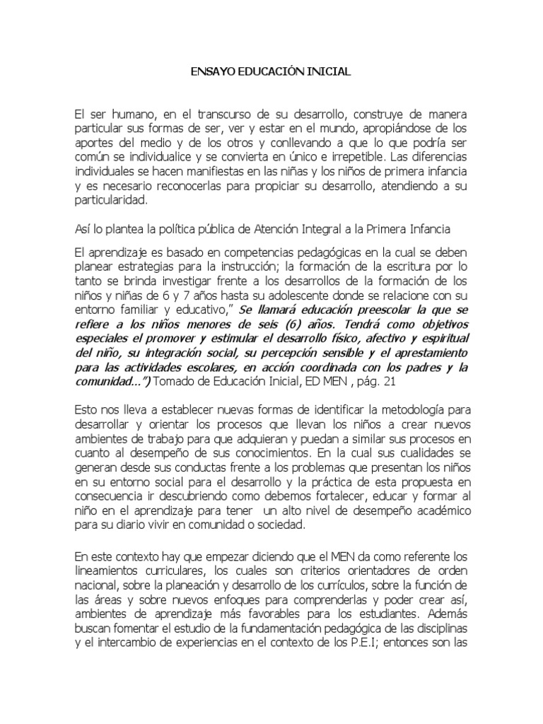 escolar”(Tomado de” SENTIDO DE LA EDUCACIÓN INICIAL, Ed MEN, 2012)
