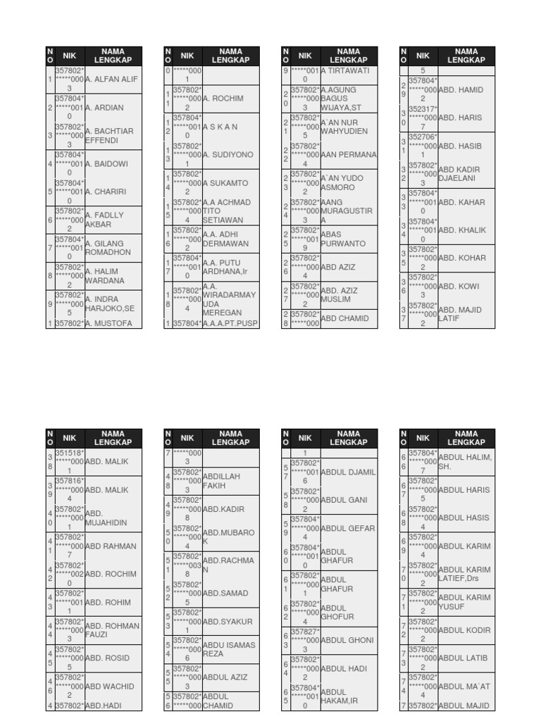 0 ARIYANTO,SH 5 8 357806* 8 ZAINAL ABIDIN