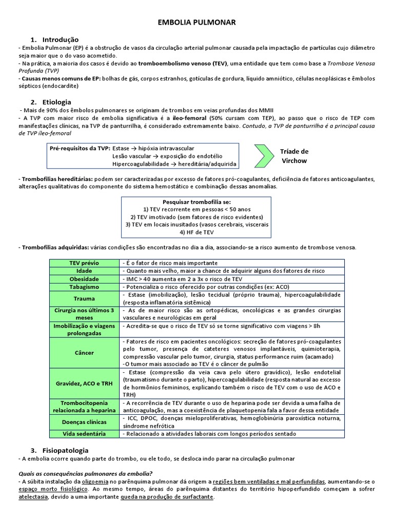 - A TVP com maior risco de embolia significativa é a íleo-femoral (50% cursam com TEP), ao passo que o risco de TEP com