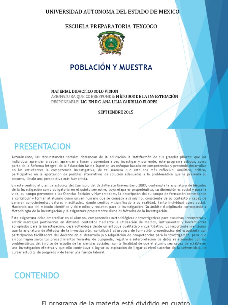 En esta presentación se aborda el tema 2.3. Población o Universo y Muestra