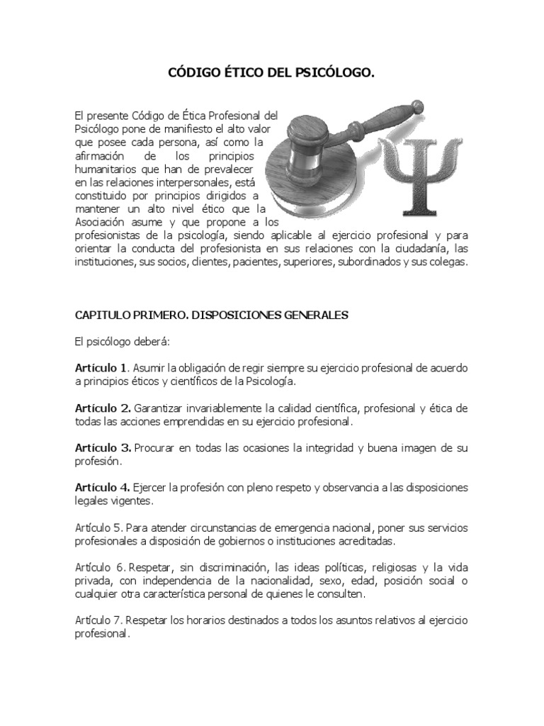 CÓDIGO ÉTICO DEL PSICÓLOGO.
