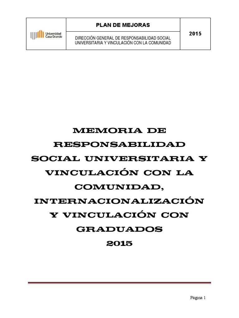 Plan de Mejoras en Responsabilidad Social 2015