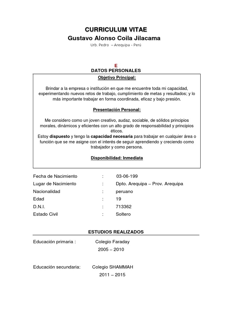 Lugar de Nacimiento : Dpto. Arequipa – Prov. Arequipa