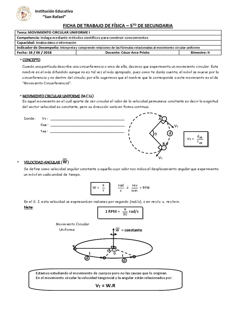 Tema: MOVIMIENTO CIRCULAR UNIFORME I