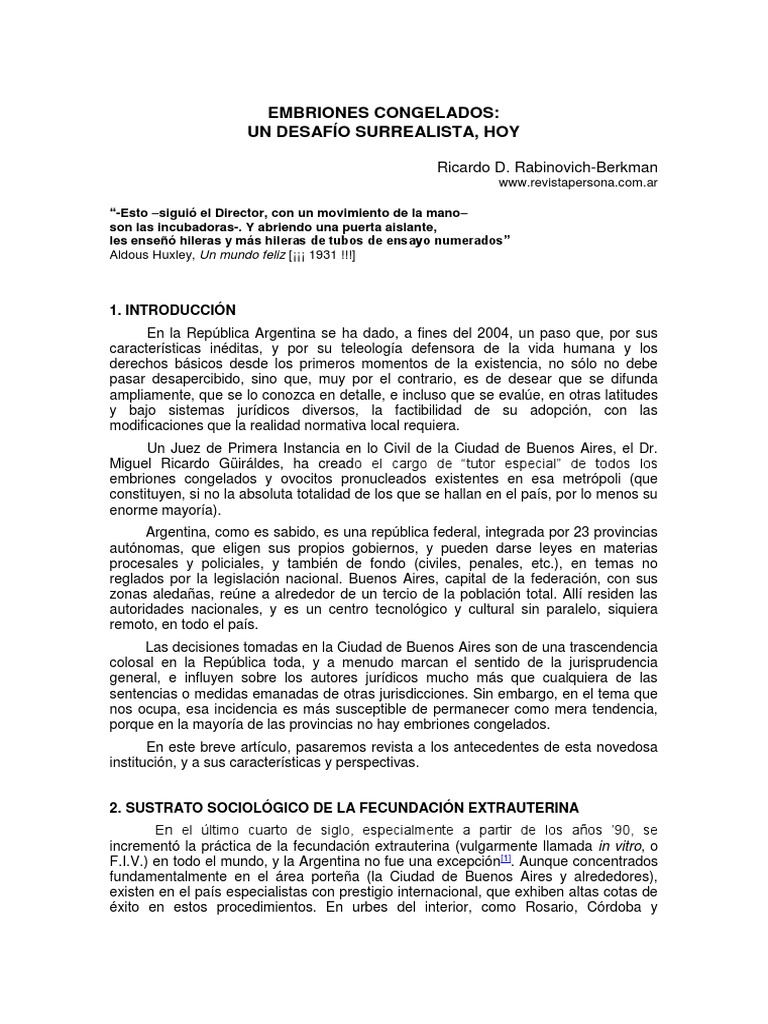 pronucleados crío-preservados”, es una institución que se yergue desde las profundas