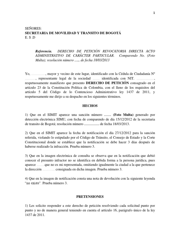 respetuosamente manifiesto que presento DERECHO DE PETICIÓN consagrado en el