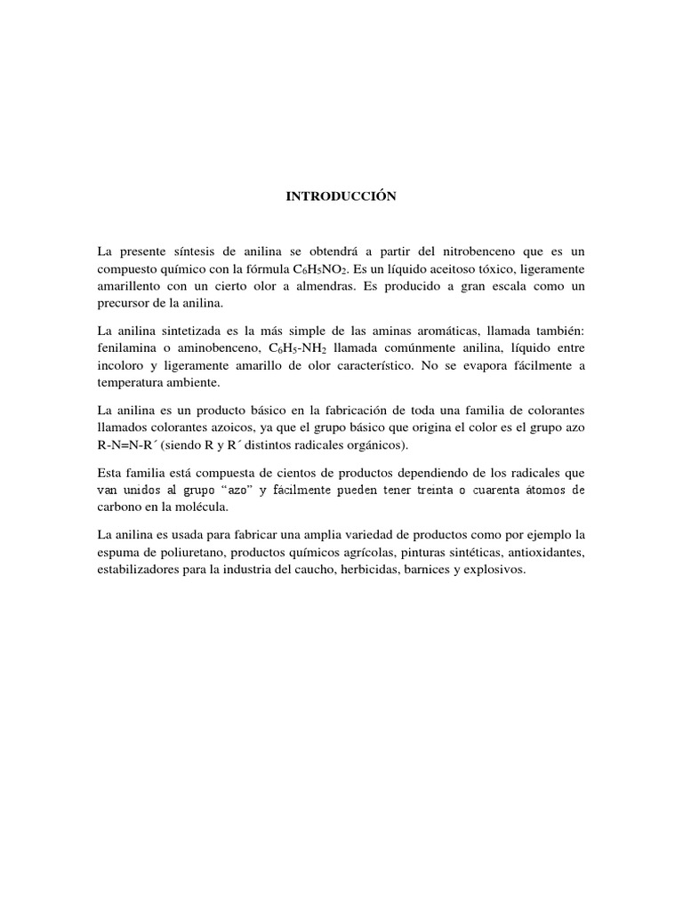 tiene por objetivo lograr obtener anilina para así utilizar en una determinada