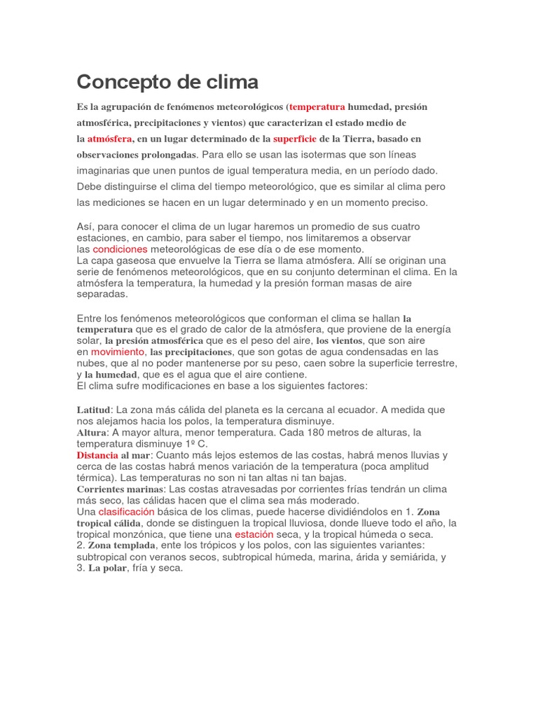 atmosférica, precipitaciones y vientos) que caracterizan el estado medio de