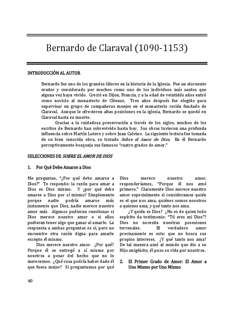 de su bien conocida obra, su tratado Sobre el Amor de Dios. En él Bernardo