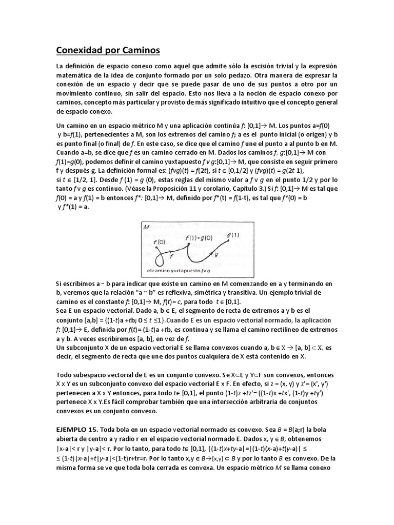 contenida en M. Un conjunto X⊂M se dice conexo por caminos cuando el subespacio X tiene