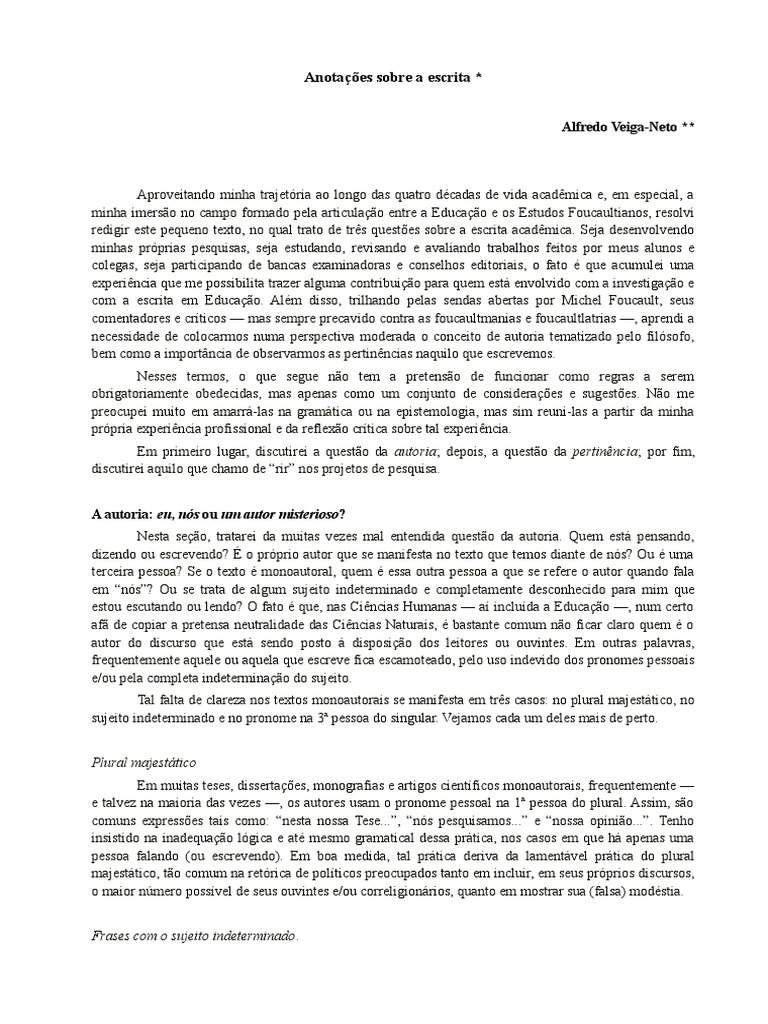 que só indiretamente ele diz respeito à escrita acadêmica.