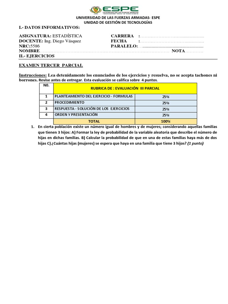 hijas C) ¿Cuántas hijas (mujeres) se espera que haya en una familia que tiene 3 hijos? (1 punto)