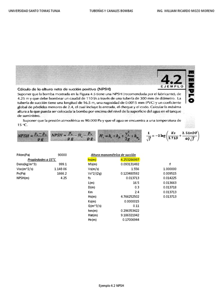 Ejercicio 4.3 : Resuelva el ejemplo 4.2 si la bomba se instala a nivel del mar