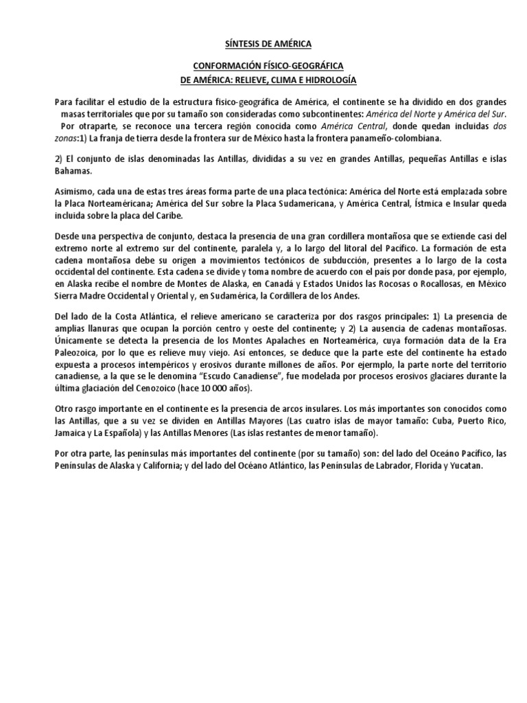 DE AMÉRICA: RELIEVE, CLIMA E HIDROLOGÍA