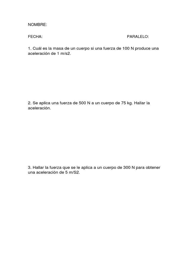 1. Cuál es la masa de un cuerpo si una fuerza de 100 N produce una