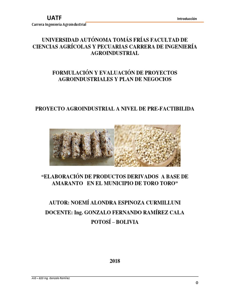 Nombre del Proyecto: Elaboración De Productos Derivados A Base De Amaranto