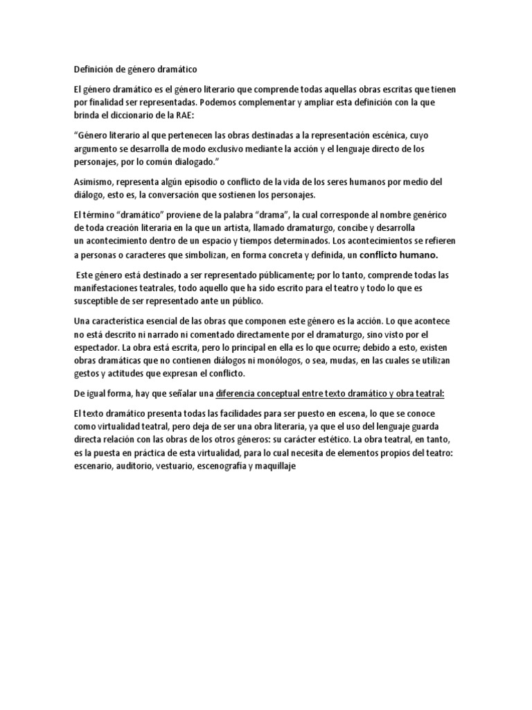 El género dramático es el género literario que comprende todas aquellas obras escritas que tienen