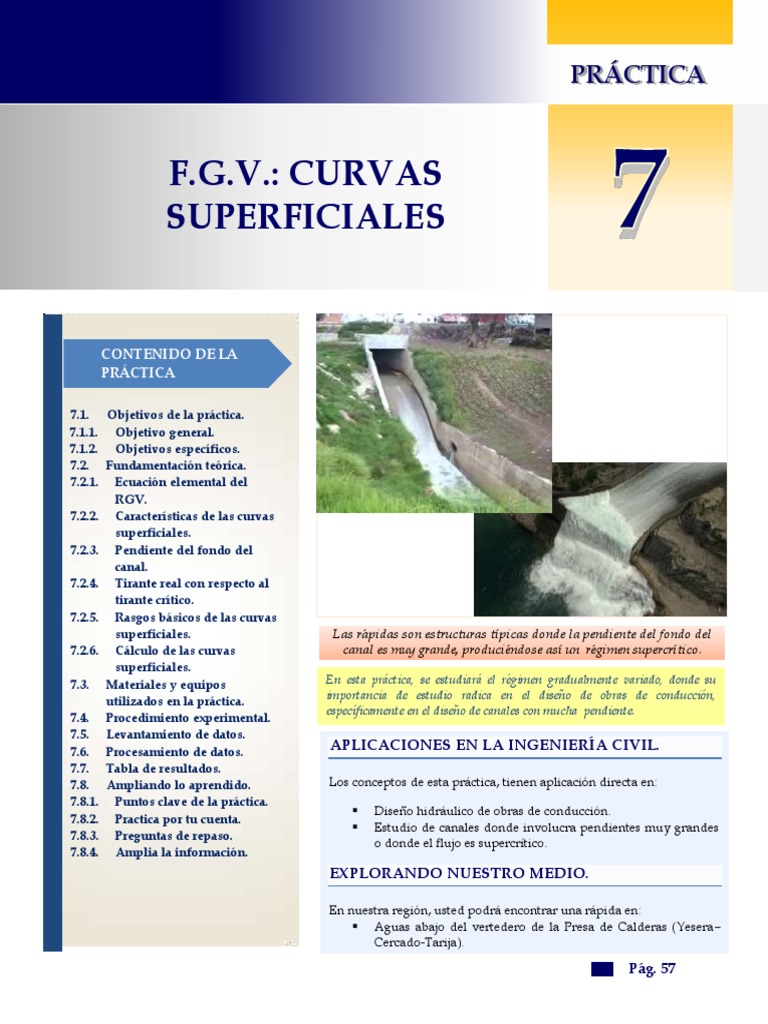 PRÁCTICA 7. F.G.V. Curvas superficiales Laboratorio de Hidráulica II CIV-322