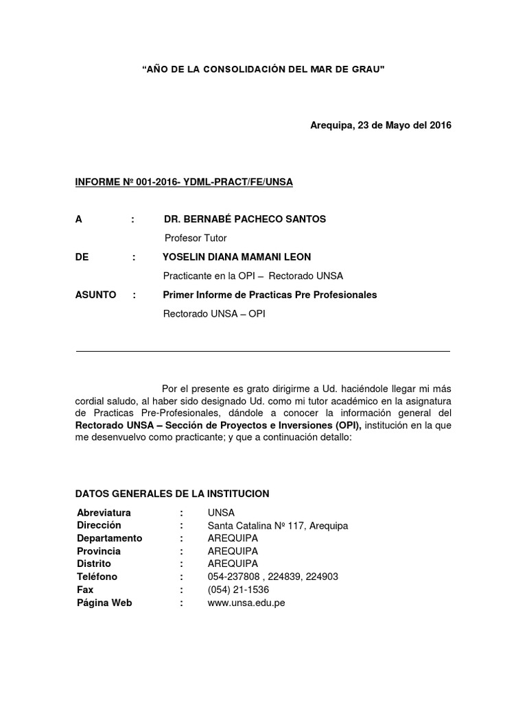 INFORME Nº 001-2016- YDML-PRACT/FE/UNSA