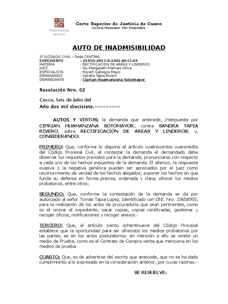 CIPRIAN HUAMANZANA SOTOMAYOR, contra SANDRA TAPIA