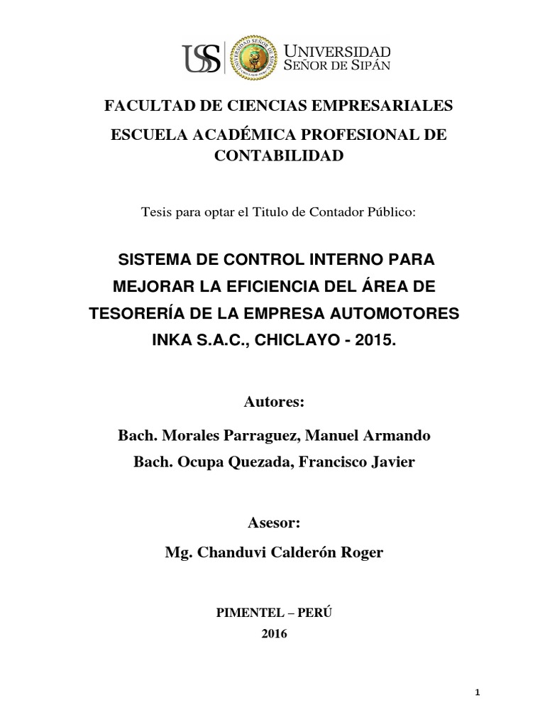 Objetivo: Conocer y evaluar el sistema de control interno del área de tesorería de la empresa Automotores Inka S.A.C., para