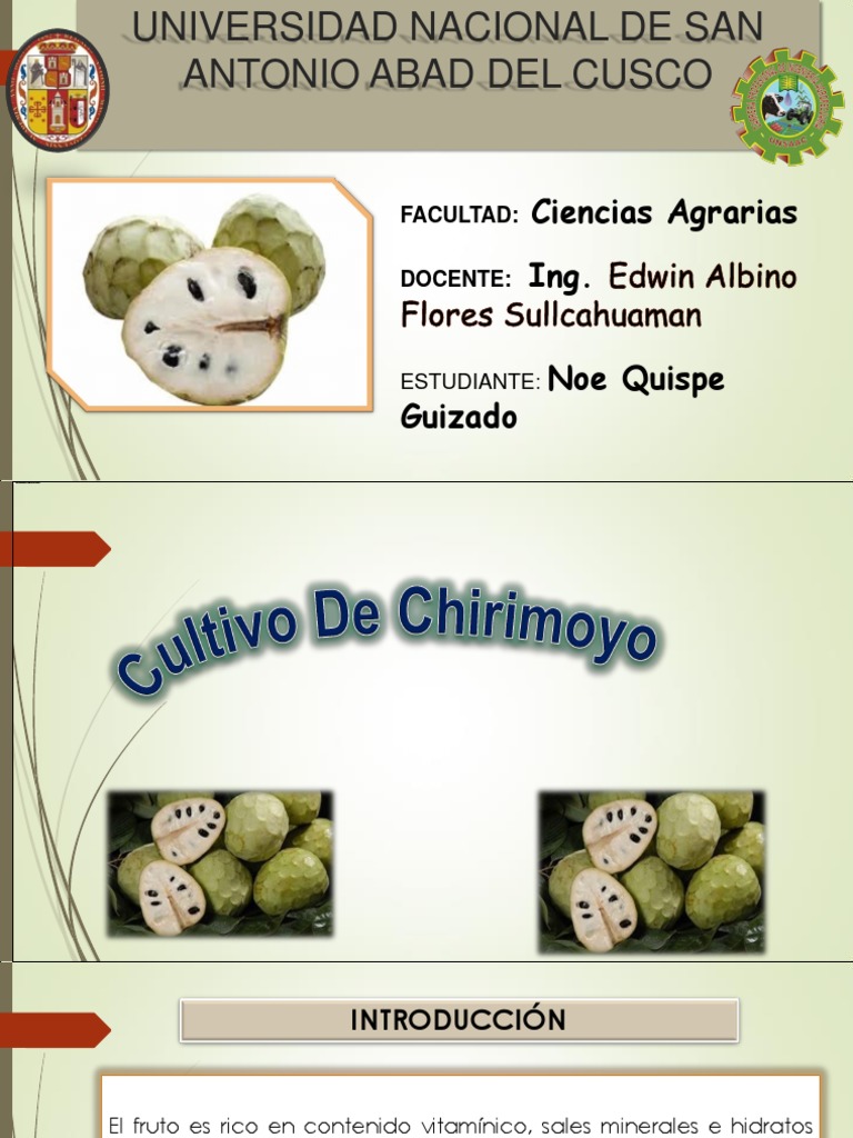 El chirimoyo se cultiva entre altitudes de 1000 hasta los 2500 msnm.