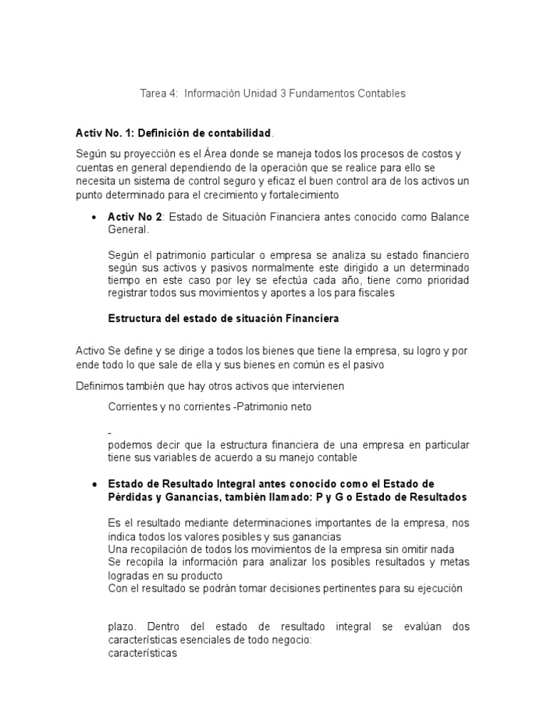 Tarea 4: Información Unidad 3 Fundamentos Contables