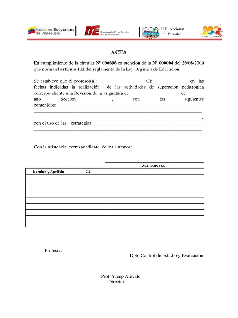 Se establece que el profesor(a): ___________________ CI:_______________ en las