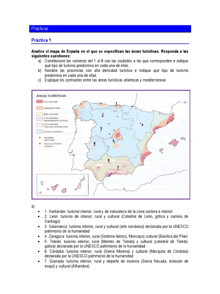 b) Señale y describa las características de las áreas de densidad turística media y alta en