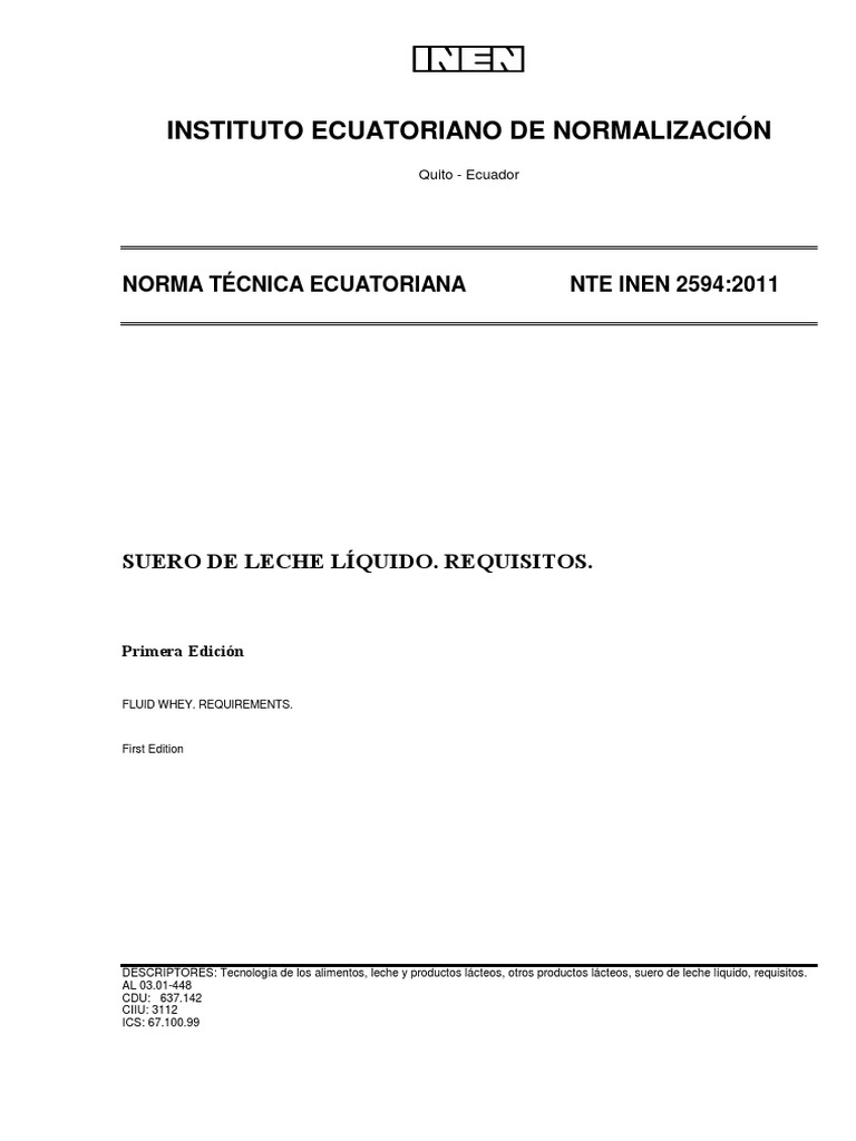 Norma Técnica SUERO DE LECHE LÍQUIDO. NTE INEN